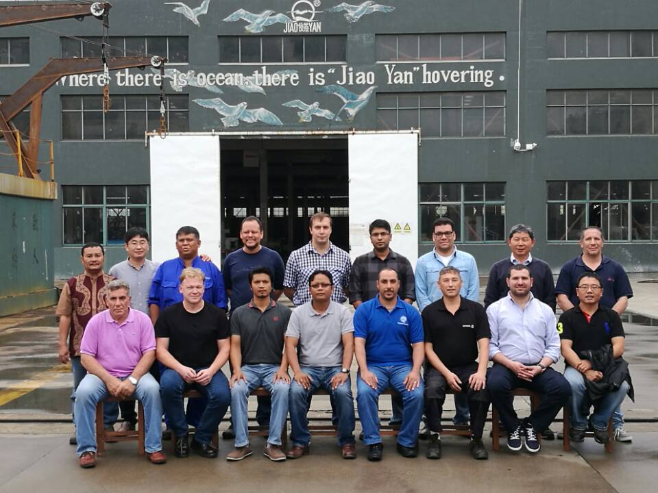 17名船舶服务精英人员来到江南手机网页版,对厂家设备的新设计,新产品进行深层次的学习和服务训练,成为佼燕救生设备的优秀服务商,为佼燕的客户提供更优质,更专业,更及时的服务.