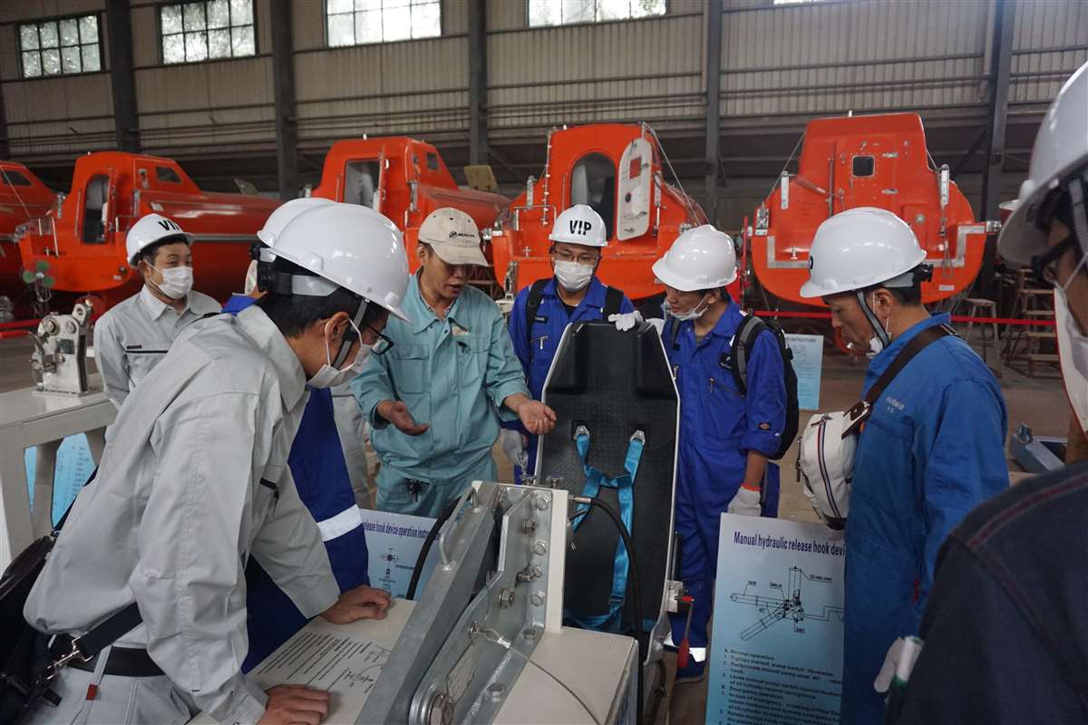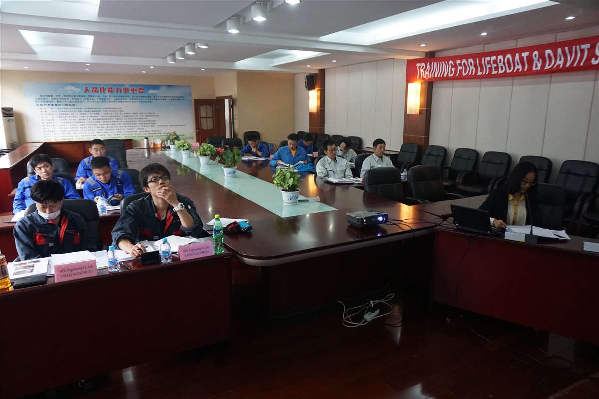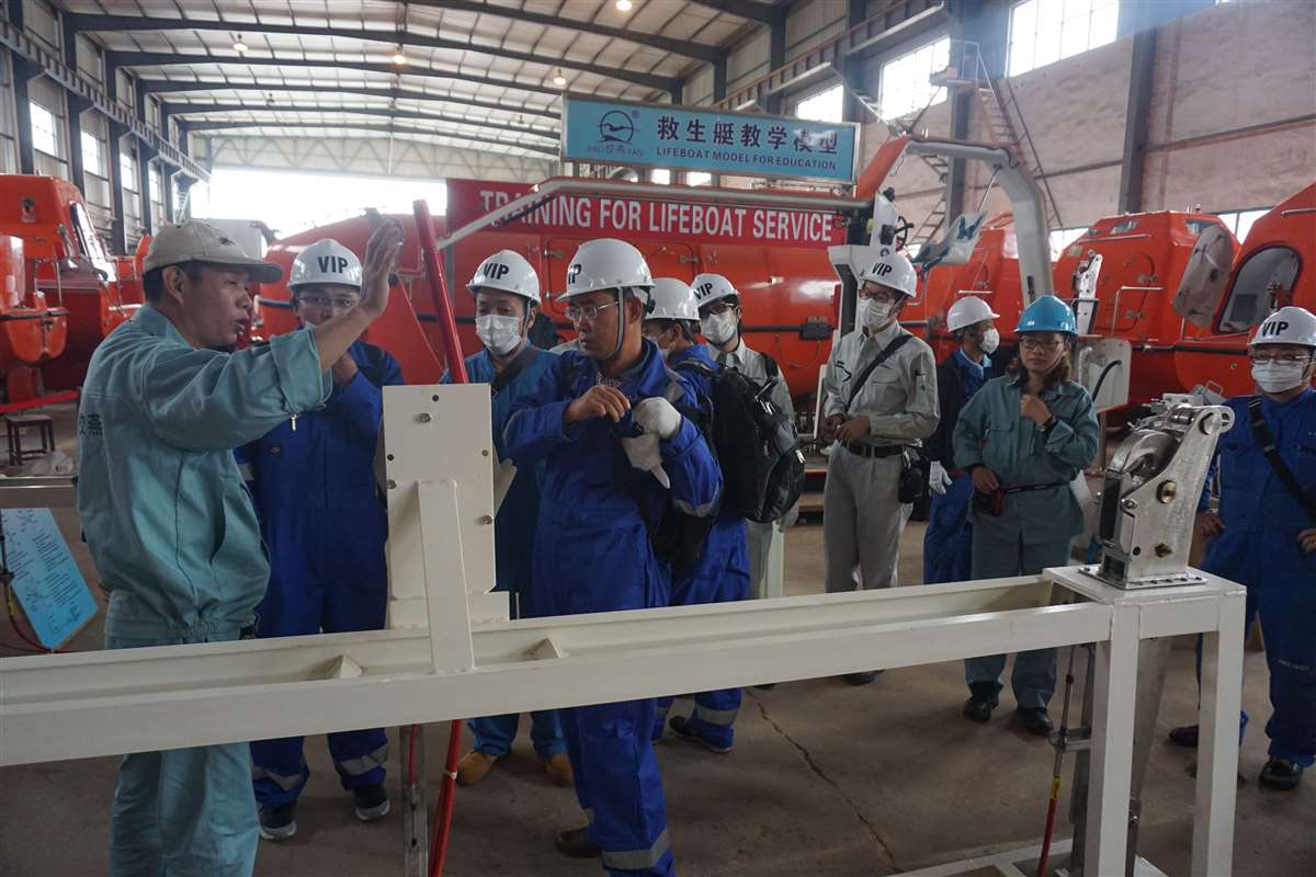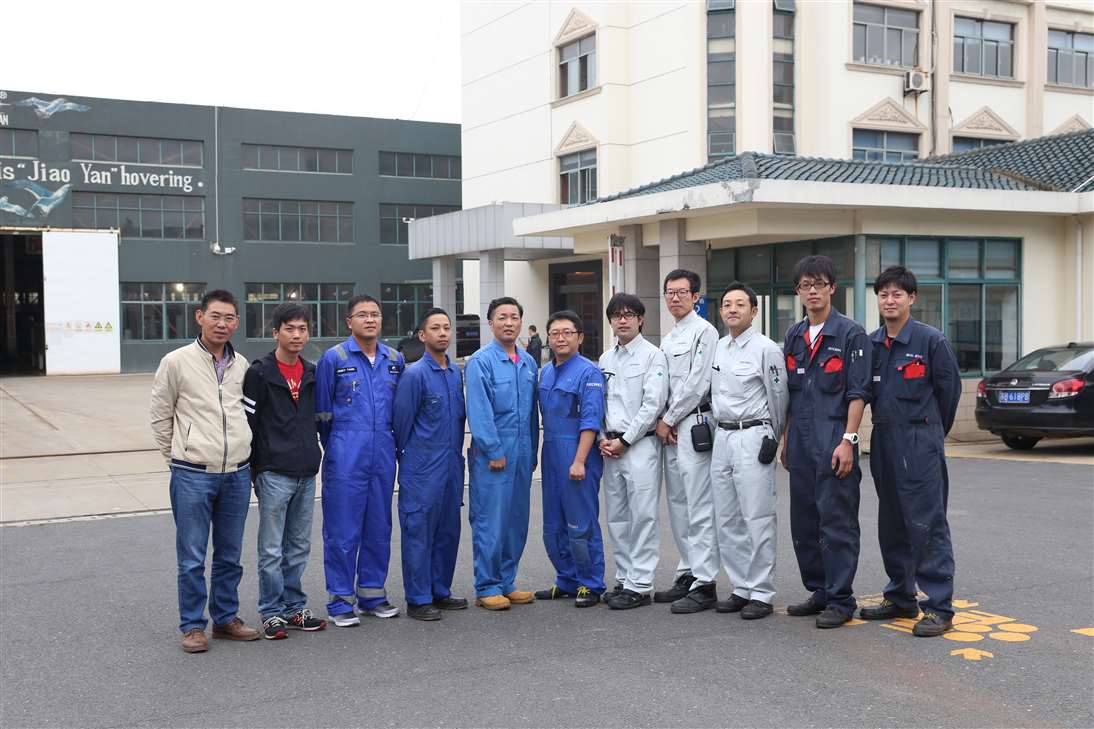 来自MANSEI INC/MARINAIR LIFERAFT CO., LTD/NISHI-NIPPON FUJIKURA CO., LTD/MOL ENGINEERING CO., LTD /SHIPGUARD INC共11名船舶服务精英人员来到江南手机网页版,对厂家设备的新设计,新产品进行深层次的学习和服务训练,成为佼燕救生设备的优秀服务商,为佼燕的客户提供更优质,更专业,更及时的服务.